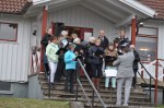 Det blev en kall och blåsig valborgskväll, men en tapper skara kom för att lyssna på tal och sånger. Kören sjöng traditionella vårsånger från trappan under ledning av Martin Kahnberg. Stefan Fogelberg var årets ”hemliga” vårtalare, och han pratade om våren och gemenskap som finns i Öxabäck.
