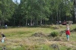 Rekordmånga kom till årets slåttergille (32 personer), både unga och gamla. Arbetet gick fort och lätt med många liar och räfsor och inte minst hästen Julle med Bruno Elmelid. Förmiddagen avslutades med den traditionella soppan.