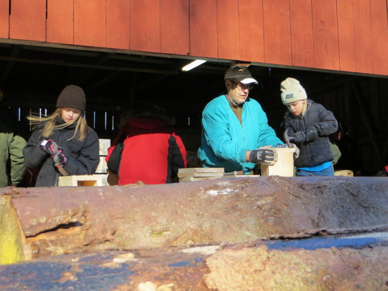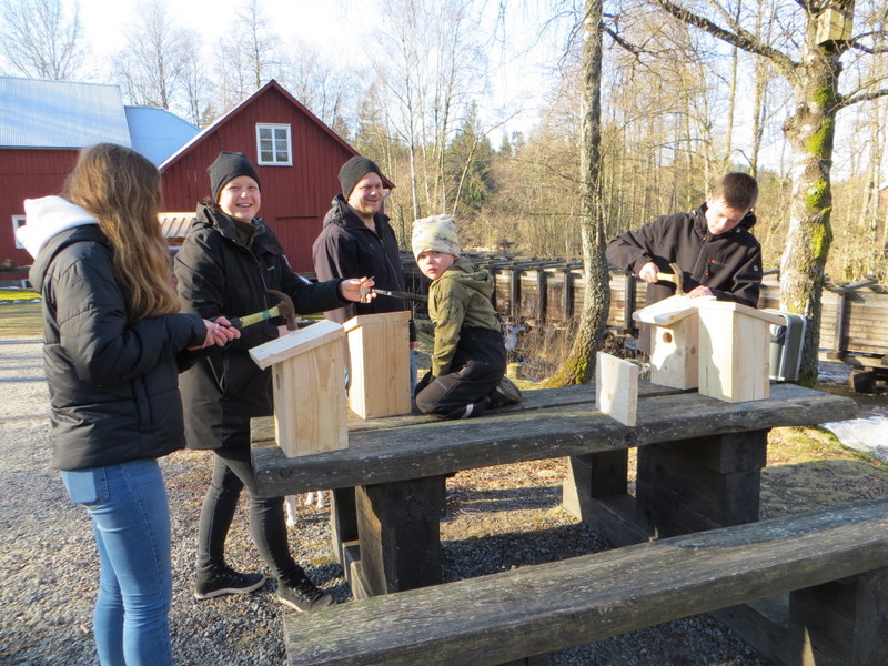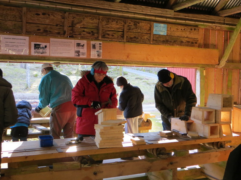 Ett 40-tal vuxna och barn mötte upp och spikade ihop ca 260 holkar. En populär aktivitet i föreningen där arbetet går på ”löpande band”. Rena tomteverkstaden!