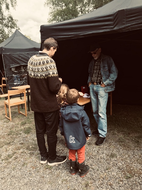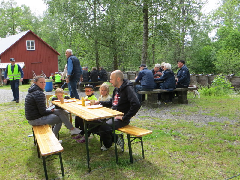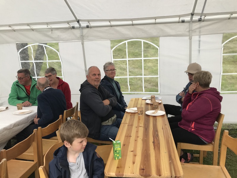 Många kom och gick tipspromenaden runt på naturstigen. Efteråt serverades fika med våfflor och man satt länge kvar vid borden utanför såget och i det uppsatta tältet och njöt av musiken. Dragspel, gitarr och sång stod Kjell Augustsson, Ronny Bertilsson, Torestorp och Sven Svensén, Gunnarsjö för. Trots hotande moln klarade vi eftermiddagen utan något regn. Lotter sålde bra och det var vinst var 10:e lott, en Sverigelott som kan ge en miljon om man har tur.