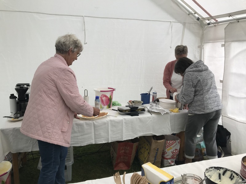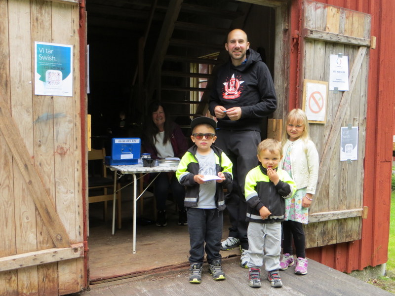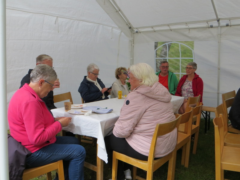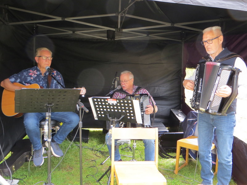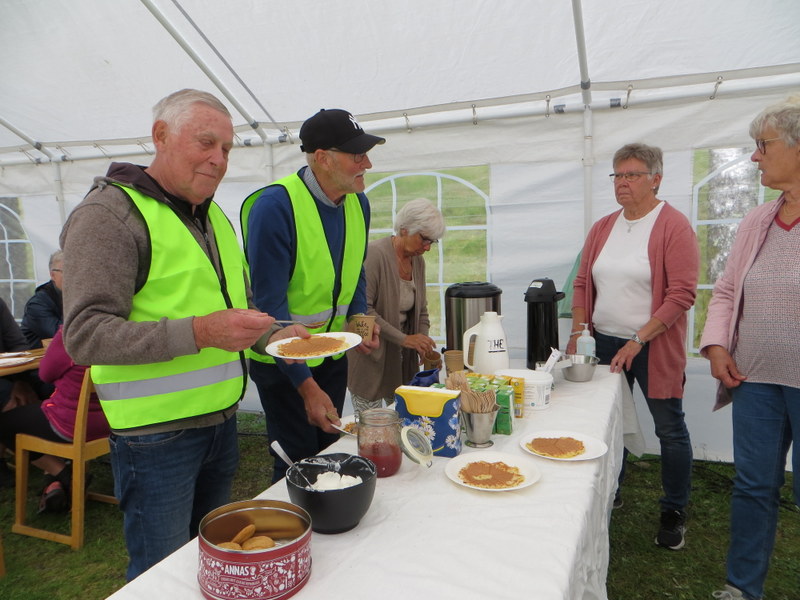 Många kom och gick tipspromenaden runt på naturstigen. Efteråt serverades fika med våfflor och man satt länge kvar vid borden utanför såget och i det uppsatta tältet och njöt av musiken. Dragspel, gitarr och sång stod Kjell Augustsson, Ronny Bertilsson, Torestorp och Sven Svensén, Gunnarsjö för. Trots hotande moln klarade vi eftermiddagen utan något regn. Lotter sålde bra och det var vinst var 10:e lott, en Sverigelott som kan ge en miljon om man har tur.