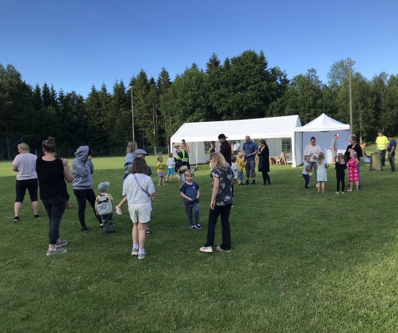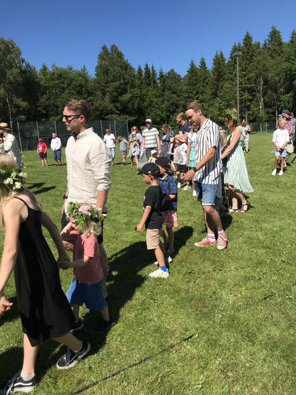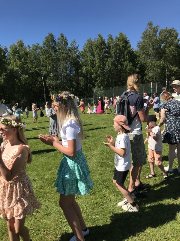 Årets midsommarafton med rekordväder lockade också många besökare, uppskattningsvis 350-400 vuxna och barn. Att det inte varit någon fest under pandemin 2020 och 2021 gjorde kanske att det var efterlängtat med fest för familjen.