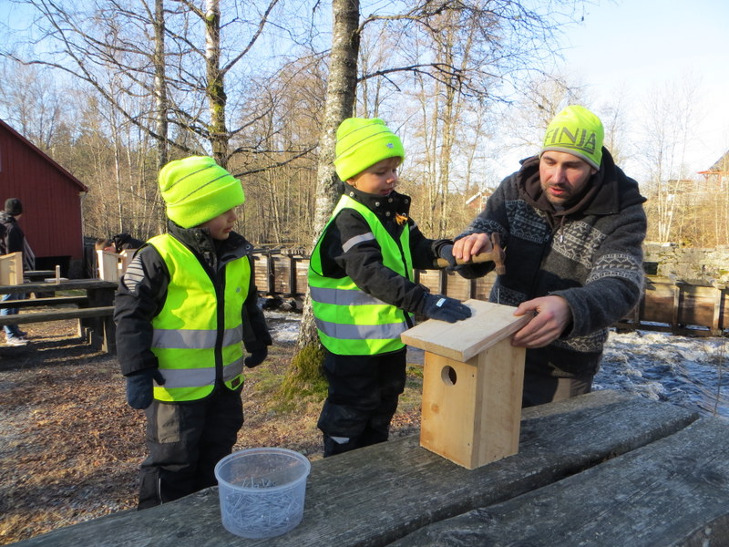 De som hjälper till att bygga får ta med några holkar hem. Övriga säljer vi för 25 kr/st eller 5 holkar för 100 kr.