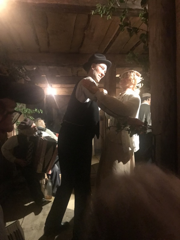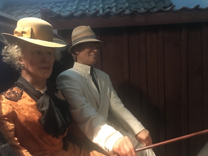 Sen tog bussen oss till Cesarstugan i Östra Tunhem. Vi samlades i en teatersalong där ägaren berättade om gården. Efteråt gick vi runt i den fascinerande utställningen Bondens år med underbara vaxdockor och miljöer från förr. I Cesarstugan åt vi en god lunch och därefter åkte vi till Stenstorp.