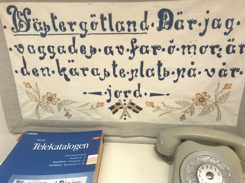 Efteråt var vi på ett bonads-museum med många citat på broderade bonader.