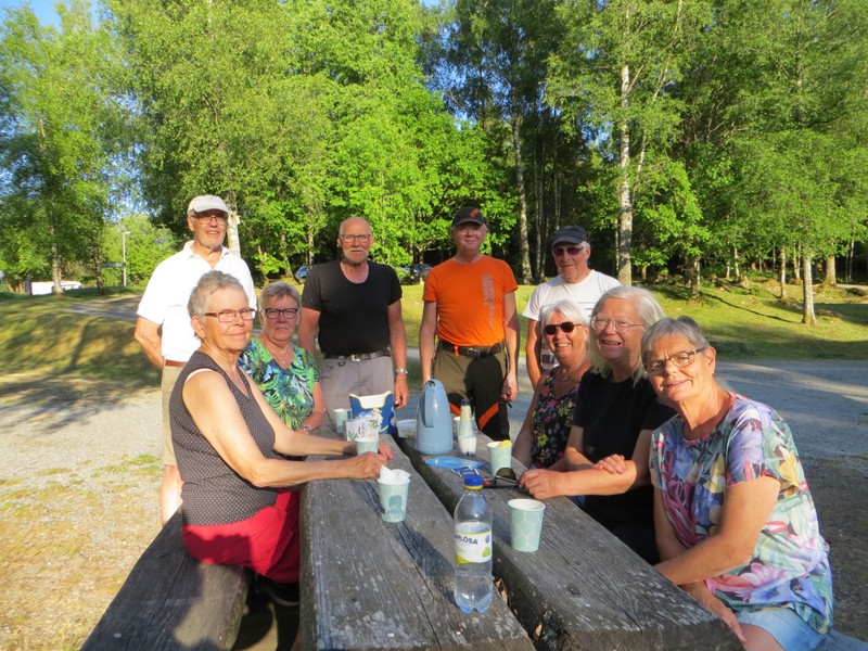 En skön varm kväll, men våra tankar fanns hos Per som försvann under måndagen och nu söktes av Missing People, polis, hemvärn mm. Efter vårt jobb blev det fika och samtalet kretsade runt allt som händer i Öxabäck denna kväll.