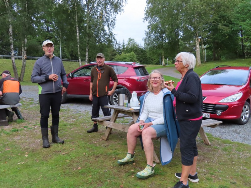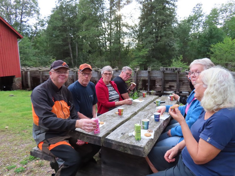 Det här glada gänget fixade slåttern i Brokvarn. Det var 15 medlemmar som slog och tog bort gräset i kullen och runt leden, så nu är det fint i Brokvarn. Efteråt blev det fika som Maj och Monica ordnat.