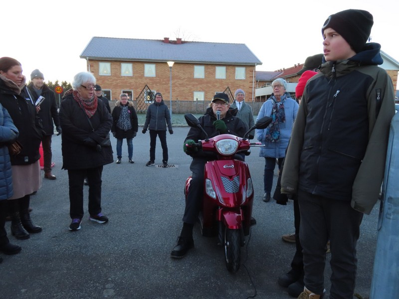 I söndags avtäckte Kerstin Johnsson, Kerstin Larsson, Anna-Greta Oscarsson och Maj-Britt Olsson skylten vid invigningen. Det var de som startade Öxabäcks Damlag 1966. Per Arvidsson (barnbarn till Doris och Jonas) och ordförande Göran Andersson höll i öppningsceremonin. Cirka 50 personer mötte upp. Efteråt gick de flesta med till Antikhuset där Hembygdsföreningen bjöd på fika med hjälp av Kerstins son Christian som skötte serveringen. Det blev en trevlig stund i Antikhusets café där ca 35 personer samlades.