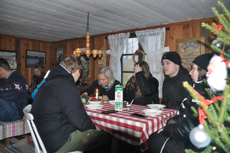 Till årets traditionella Jul på Långås kom 52 personer som gick tipspromenaden trots att inte vädret var det bästa. Det var grått, disigt och regnigt och tyvärr hade all snö töat bort. Men på stigen upp till torpet fanns tomten som bjöd på godis och längre fram fanns det glögg. I stugan var det varmt och mysigt och gröt serverades som vanligt. Musiker på gitarr och dragspel var Lennart och Marianne och det blev stundtals allsång med kända julsånger.