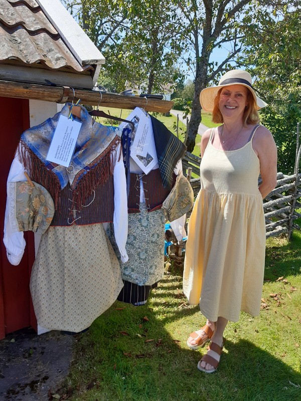 Utanför stugan hängde två Marbo-dräkter som skänkts till föreningen. Under åren har Hembygdsföreningen fått många gamla bruksföremål och annat. Mycket av detta finns i stugan och det som inte får plats finns i Brokvarn.
