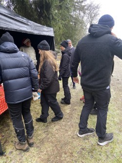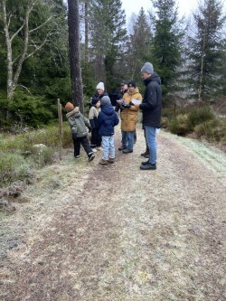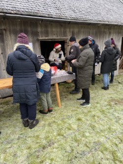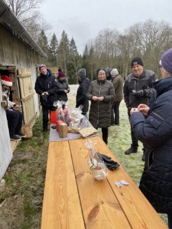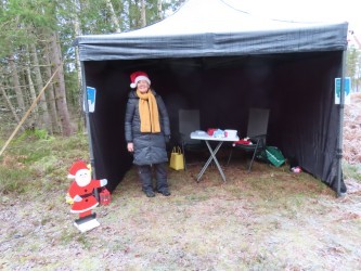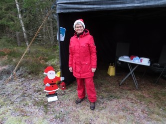 75 personer gick tipspromenaden, både barn, vuxna och några hundar. På vägen fanns Öxabäcks tomte som i år varit synlig på flera ställen. Han bjöd på godis och längre fram på stigen fick man glögg och pepparkaka. I stugan serverades julgröt och musik.