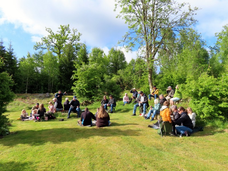I år gick Gökottan till Gigereds soldattorp. Vi var 35 personer varav 8 barn som gick en kort tipspromenad till torpruinen. En underbar morgon med klarblå himmel. En liten berättelse om torpet fick man höra. Det har bott folk på denna plats sen slutet av 1600-talet. Första soldaten Pähr Pärsson som blev corpral dog under Karl XII:s krig i Halden. Du kan läsa mer om övriga som bott här fram till år 1947 under Torpvandringar ovan.