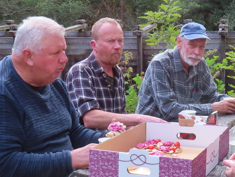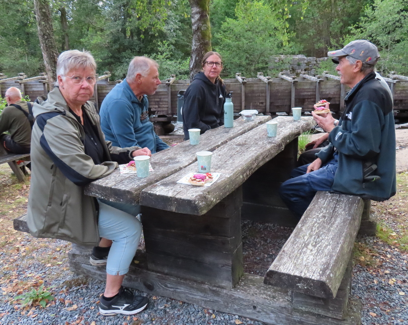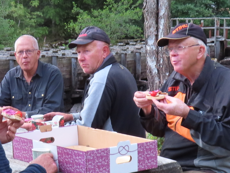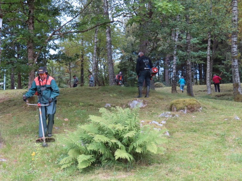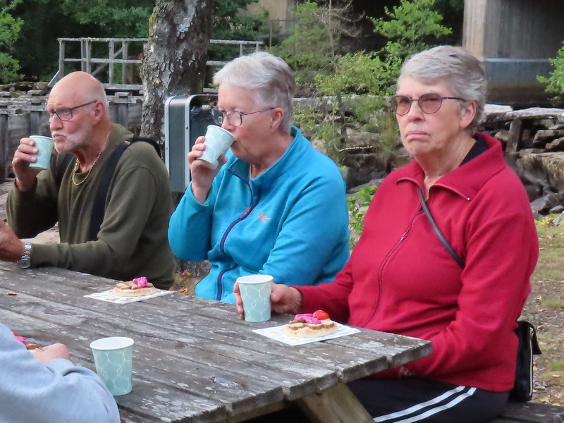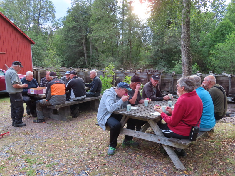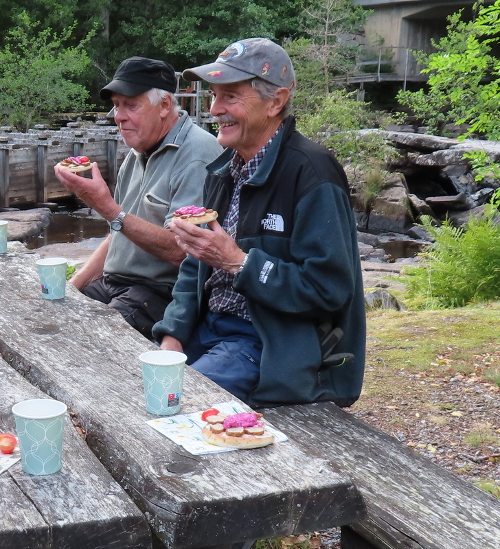 I onsdags var det dags för slåtter och 18 arbetsvilliga kom med grästrimmer och krattor och fixade kullen och stigar runt broarna. Efteråt bjöds de på goda mackor och kaffe.