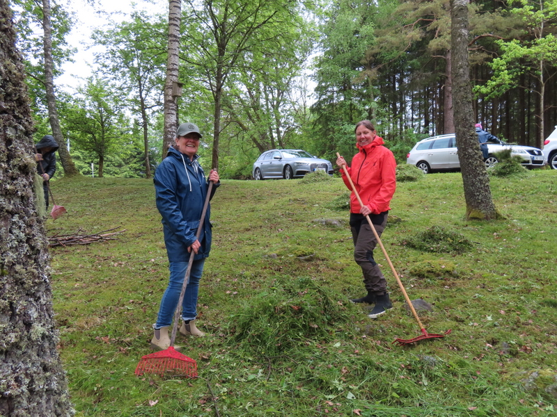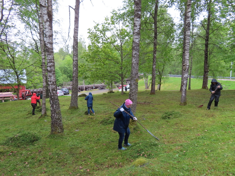 Trots en regnig eftermiddag och kväll var det 16 tappra medlemmar som kom och gjorde fint runt Brokvarn. Efteråt bjöds på fika inne i sågverket och alla verkade nöjda med resultatet.