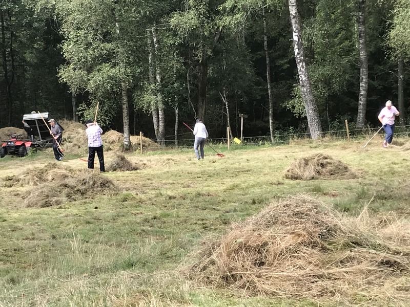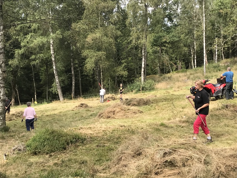 I lördags den 7 augusti var det slåttergille på Långås i Öxabäck. Rekordmånga kom och hjälpte till med krattning och bortforsling av allt gräs. Vi räknade ihop 32 personer och bland dem fanns 4 barn som fick se hur slåtter gick till på gammalt sätt.