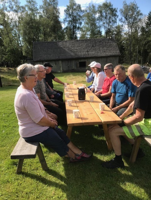 Vid en paus i arbetet bjöds på kaffe med dopp och när allt var klart serverades den traditionella slåttersoppan.