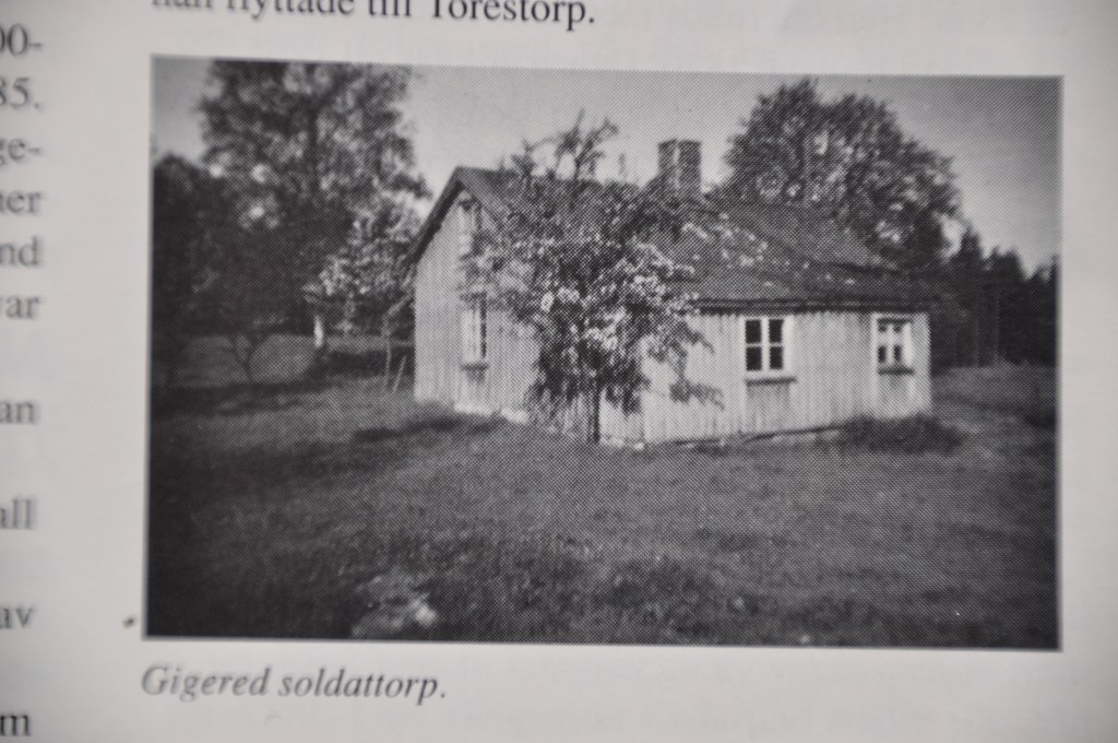 Frans född 26/4 1882 köper Gigered 1:3 år 1916 och byggde huset 1917 och året efter 1918 ladugården. Augusta flyttade dit, hon hade bott kvar på soldattorpet med dotter Viola till husen var klara. 1936 köper Frans soldattorpet – bygger eller fortsätter bygga den 850 meter långa stenmuren som går runt ägorna..